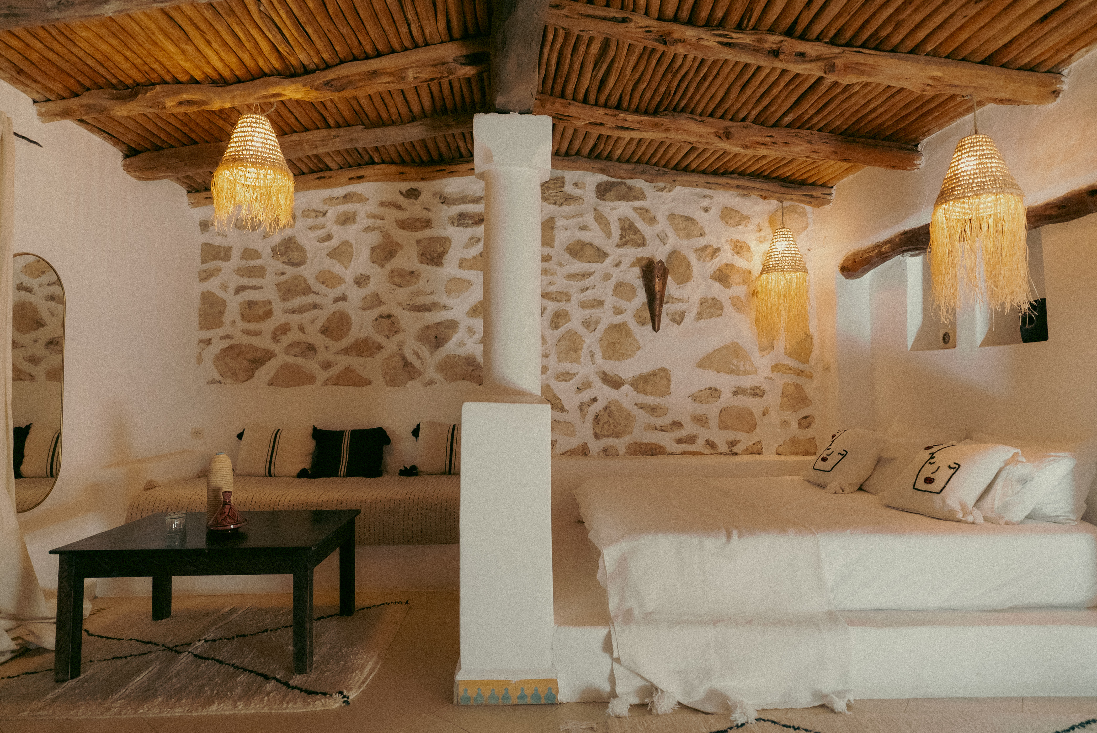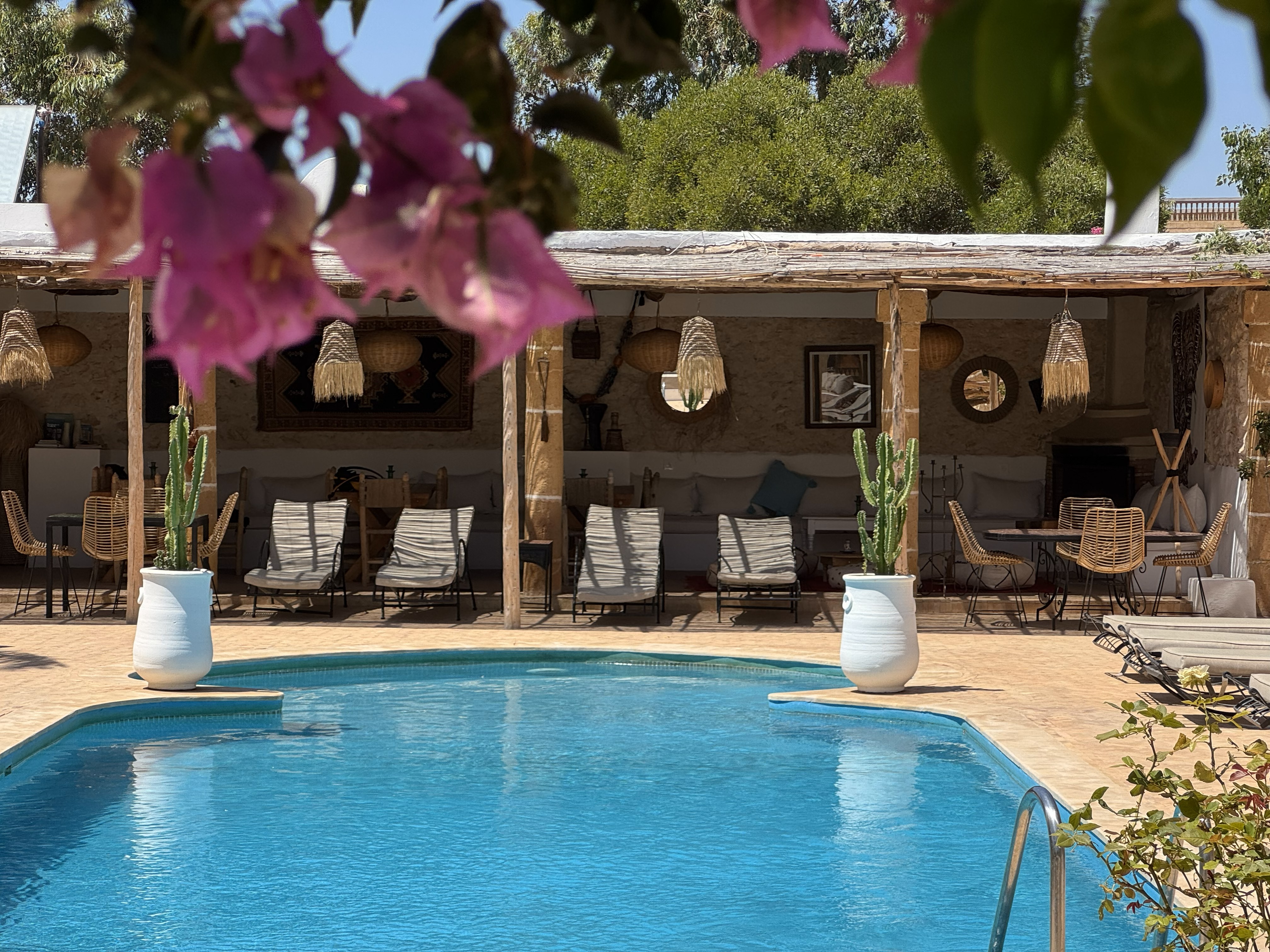 Riad Eucalyptus — Ethnic Hotel Boutique-hôtel | Piscine chauffée | Spa | Essaouira, Maroc Le Riad Eucalyptus est un boutique-hôtel à caractère, niché à quelques minutes de la médina et des plages d'Essaouira. Derrière ses murs discrets, 14 chambres et suites aux univers berbères, bohèmes et ethniques contemporains, pensées pour ceux qui cherchent autre chose qu'un hôtel standardisé. Chaque chambre raconte une histoire. Volumes généreux, literie confortable, détails soignés. --- Sur place -