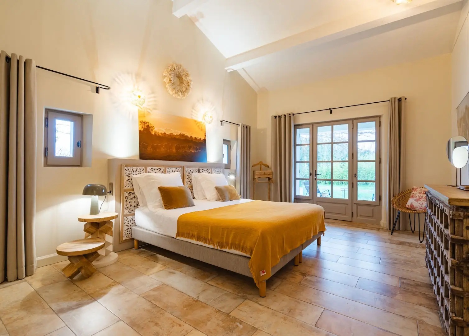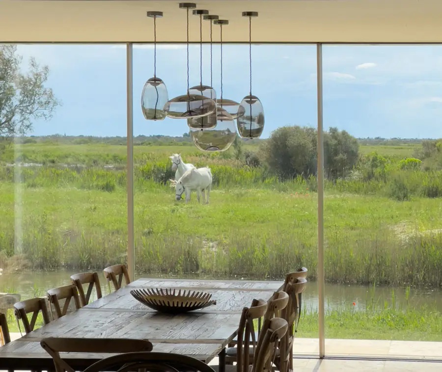 Une immersion rare au cœur de la Camargue Au cœur des paysages préservés de Camargue, le Mas du Couvin est un refuge rare, posé entre ciel, eau et nature sauvage. Entouré d’étangs et de roselières, il offre une immersion totale dans un environnement vivant, rythmé par la présence des flamants roses, des chevaux et du vent. Entièrement restauré avec élégance, le mas accueille ses hôtes dans une atmosphère chaleureuse et authentique. Cinq chambres lumineuses, de vastes espaces de vie ouverts sur l’extérieur et de nombreuses terrasses invitent à savourer chaque instant, entre convivialité et contemplation. Piscine nichée dans les roseaux, cabane face au marais, silence profond… ici, tout est réuni pour ralentir et se reconnecter à l’essentiel. Une adresse confidentielle pour vivre la Camargue autrement.